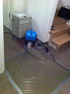 Dann haben wir ein schönes Wochenende mit einem Loch im Flur gehabt, denn am Montag wurden uns erst die kleinen süßen Maschinchen gebracht, die jetzt mit Höllenlärm und großer Hitze den Boden austrocknen sollen. Diese stehen mit ein wenig Pech noch bis ins neue Jahr, dann kann das Loch erneut geschlossen werden und eine neue Fliese gelegt werden...